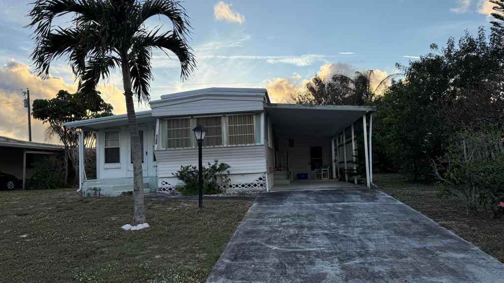 Charming 3 Bedrm/ 1 Bath expanded singlewide in Ridgeway, All Ages, Manufactured Home community in Hobe Sound. The main home features LR, eat in Kitchen, Full Bath & Primary Bedrm & the side addition has another LR area plus 2 additional Bedrooms (no closets). The Full Bath has dual sinks & tub/shower combination.The LR is open to the dining area & Kitchen. The Primary Bedrm has a double closet + extensive built-ins. The Washer/Dryer is in the Shed. Ridgeway is minutes to the ocean beaches of Jupiter Island, ICW Boat Ramp, shopping, restaurants & entertainment. No HOA fee - if you want to join the pool, clubhouse & activities, you pay $300+ per YEAR. YOU OWN THE LAND, ALL PETS WELCOME.
