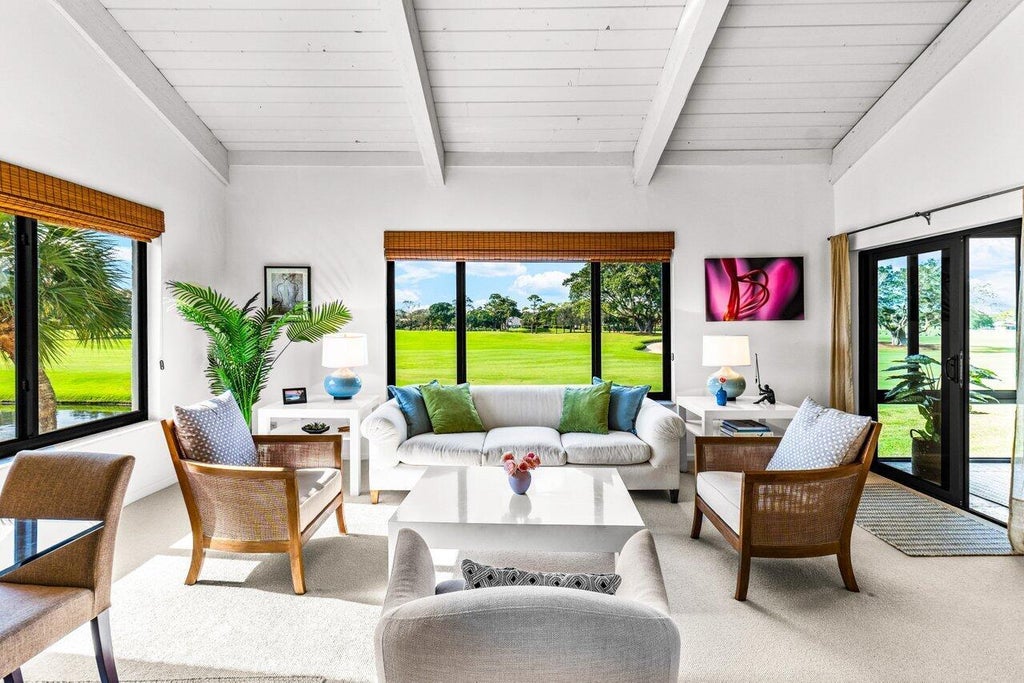 Step inside this luxurious 3br, 2bth corner condo, where modern updates meet timeless charm. Inspired by an elegant chalet, this sunlit home features exposed wood-beamed vaulted ceilings & large windows that frame sweeping lake & golf views, creating a warm, inviting atmosphere. Enjoy breathtaking west-facing sunsets, relax in the glass-enclosed & screened lanai & sip morning coffee on the east-facing open patio. Additional highlights include a renovated kitchen that shines w/ zen-like white finishes, full-coverage hurricane impact glass, newer A/C, a brand-new roof w/ the assessment paid in full, and a storage closet near your reserved parking spot. Conveniently located near the exterior elevator for easy access & walking-distance to the subdivision pool. A tranquil retreat to call home.
