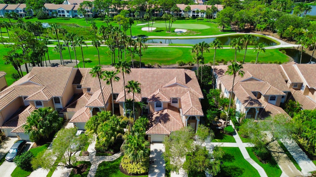 AVAILABLE FOR THE 2025 SEASON! Brand new furniture! Mesmerizing panoramic golf and lake views! Quiet and tranquil 2nd floor end unit, over 2,000 square feet. 3 bedrooms, 2 full baths, 1-car garage, high ceilings. Many recent updates including new flooring, fresh paint, new washer, dryer, and water heater, ADT Security system. Gated subdivision. Lakeside community pool. Large screened-in balcony.