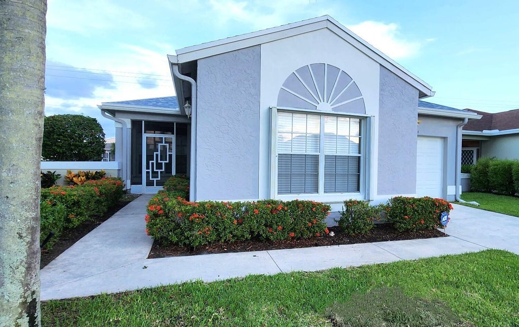Brand new roof and hurricane skylight just completed March, 2025! Beautiful home in Pine Ridge at Delray Beach, a 55+ community on Hagan Ranch Road. Features include an updated quality kitchen with a skylight, garage, updated baths, lighting, fixtures, flooring, 3 walk in closets. Also included are accordion hurricane shutters, a large side yard, and covered screened lanai. Large adjacent living room / DR / family room combination. A great convenient location close to all Delray Beach amenities, hospitals, stores, restaurants, Boca Raton, and easy access to highways. Community amenities include a fitness center shuffleboard, 2 pools, tennis, pickleball courts, and more. Basic cable, internet, alarm monitoring, periodic exterior painting and lawn cutting are included in the low HOA fee