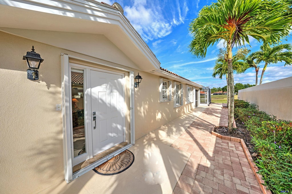 Well appointed home with even cosmetics taken care of over the years. Original seasonal owner. Large screened lanai overlooking the 13th fairway with a pond separating the property from the fairway Enjoy the prevailing easterly breezes in the warm afternoon shade and the picturesque landscape. On a dead end cul de sac. Newer appliances, A/C, water softener and accordion hurricane shutters. Original counter tops without a mark including the rarely used stove & oven. Priced according to your needs and taste. Bocce, pickleball and tennis with two pools and a spa available for your use. Private Golf Club with memberships available. Call for details. Close to shopping, PBI airport, three hospitals and various restaurants, boating, fishing and entertainment venues.