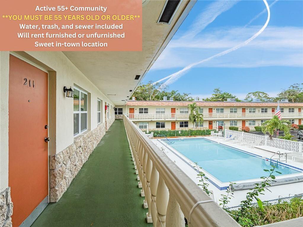 Experience 55+ living in this beautifully maintained 2/2 condo. Available fully furnished or unfurnished & move-in ready, it combines comfort, convenience -where you can walk to dining, local coffee shops, grocery shopping, & community events like Downtown Fridays! Features: updated kitchen & baths, heated community pool & BBQ area. RATES: Season: $2000/month - Off Season: $1500/month. Embrace an active, vibrant lifestyle in this exceptional condo, your perfect getaway or long-term retreat! Water, trash, & sewer included.