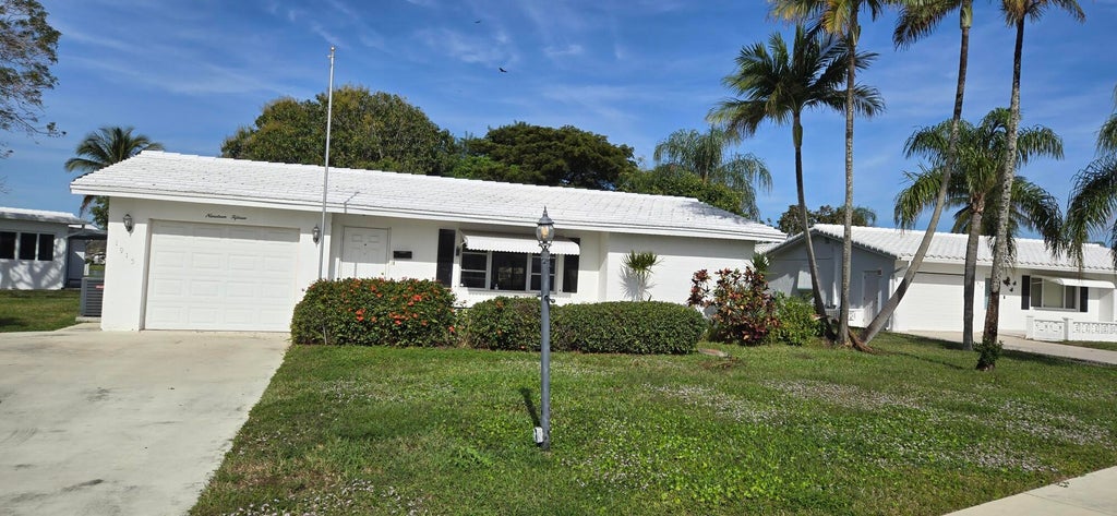 Waterfront two bedroom, two full bath single family home in desirable 55+ community of Leisurville. Challenger model with a long driveway fitting 4 cars, and a1 car garage. Home has a large enclosed patio and an open patio with beautiful sunset view over Lake Roma. This home is ready and needing a remodel.