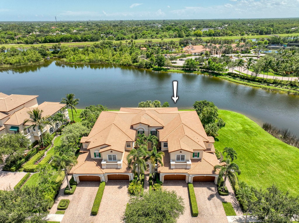 Breathtaking views could be yours from this exceptional single-story carriage home in the prestigious Jupiter Country Club. As a former model home, it boasts numerous luxurious upgrades and is set in an ultra-private location offering magnificent lake views. The thoughtfully designed one-level floor plan includes 2 bedrooms, 2 bathrooms, a den/office, and a 2-car garage, providing all the essentials for easy Florida living. Walking distance to the fitness club and pickleball courts, the home offers convenience and a vibrant community lifestyle. Furniture is negotiable, allowing you to tailor the space to your personal taste. Elegantly inviting, this energy-efficient residence features a tankless water heater, CBS construction, and impact glass windows throughout. Interior designer