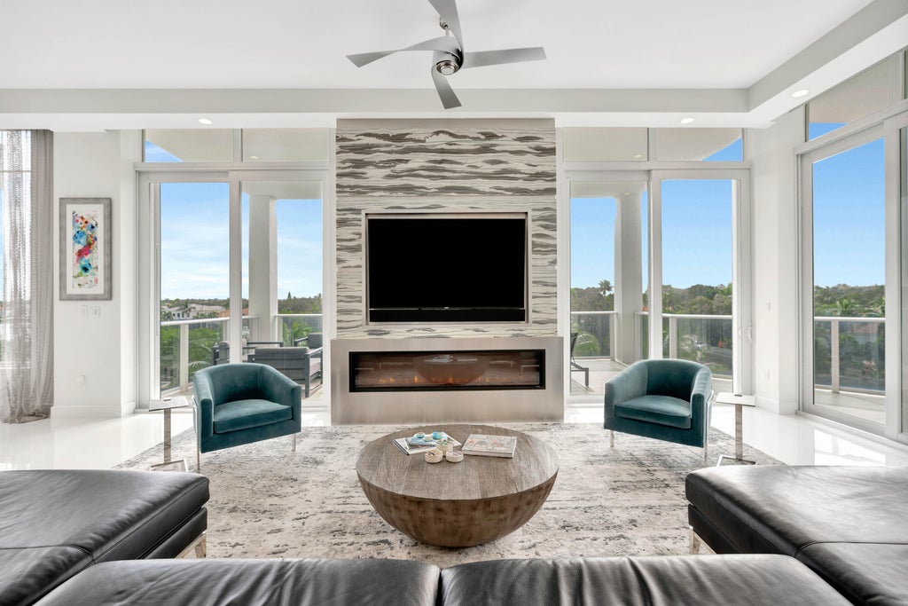 This is the most sought after location in all of Azure. This Penthouse features spectacular sunrise views of the Intracoastal Waterway and sunset views of the Azure Marina. As you exit your privately keyed elevator into this custom residence you will find 36'' polished white porcelain flooring, impact windows and doors and ceiling heights up to 13 feet. This open great room plan includes Grohe plumbing fixtures, custom kitchen and bathroom cabinetry, quartz kitchen and bathroom counters and Thermador appliances including an oversized wine tower. This is the premier residence at Azure. Azure is the premier luxury waterfront condominium of the Northern Palm Beaches. Click more...