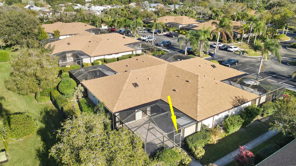 Come take a look at this lovely 2 bedroom, 2 bath villla. Relax on your spacious oversized screen lanai and feel the ocean breezes. Lanai has travertine pavers throughout, creating a polished and inviting outdoor space.Inside the kitchen boasts a granite countertop on one side and a durable formica counter on the other, offering both style & practicality. The master bathroom includes a newly tiled shower stall, while the second bathroom has been updated for a fresh, modern feel.Additional highlights include a new roof installed in 2023, two outdoor parking spaces, and accordion hurricane shutters for added security. The villa is located just a short walk or bike ride from the community amenitites, including a heated pool, hot tub, tennis and pickleball courts.