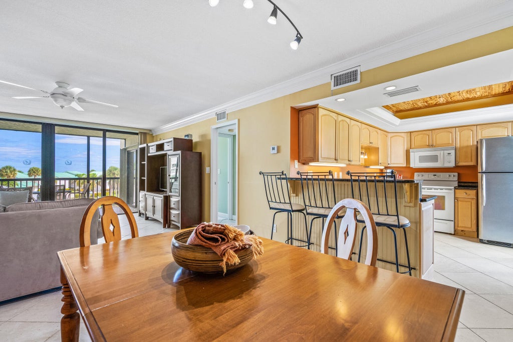 This corner lakefront condo offers a blend of resort-style living & everyday comfort. The sliding glass doors open to a covered screened porch w/a serene lake view. This turnkey furnished condo features a kitchen with breakfast bar, tray ceiling w/beadboard inlay, granite counters. Generous bedroom sizes comfortably accommodate guests & convenient in-unit laundry takes the chore out of washing beach towels! Ocean Village is your gateway to a lifestyle of unparalleled amenities including a pool w/tiki bar, recreational courts, private beach access, fitness, & golf course, restaurant.