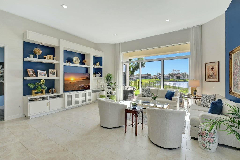 Popular Chardonnay model with beautiful water view and so much more. This home has been meticulously maintained and will be appealing to anyone who enters this light and bright home. The Great Room home has new quartz counters, 42 in cabinets and beautiful tile backsplash. With a stainless steel appliance package that includes a french door refrigerator, newer dishwasher, range and microwave, you will enjoy the time spent in the kitchen preparing your favorite meals. The kitchen is open to the Great Room providing great space to entertain family and friends on any occasion. The primary bedroom has room for any size bedroom set and sitting area. The two closets are both fitted for easy organization. The primary bathroom has dual vanities and a separate shower and tub.