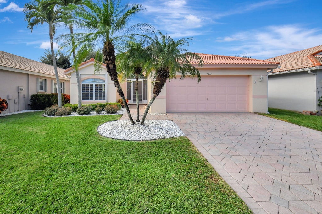 Beautiful well-maintained home nestled in the heart of Boynton Beach. This 3 bedroom 2 baths 2 car garage home is located in the active adult community of Royal Lakes. The spacious living and dining area with vaulted ceilings is light & bright with an open floor plan that flows out to a covered screen patio. The elegant kitchen has been updated with quartz countertops, white panel cabinets, stainless steel appliances, pantry and a sunny breakfast area. The primary suite is spacious with a renovated en suite bathroom that includes a large soaking tub, a separate shower and walk-in closet plus a lovely guest room and the 3rd bedroom is an office. The hall bathroom has been renovated with a walk in shower. The home boast accordion shutters throughout. Great location. Hurry a must see!!!