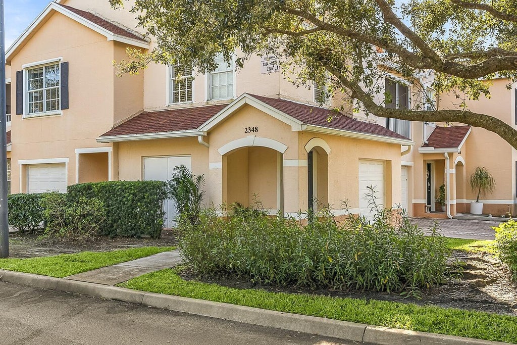 Discover this spacious, freshly painted 2BR/2BA corner condo in the gated community, Palm Estates. Ideal as a primary residence, vacation retreat or investment property. It features a spacious living room with vaulted ceilings, dining area & a modern kitchen with LED smart lighting and under-cabinet illumination. Upgraded with smart ceiling fans, smart garage door opener w/ external code panel, GFCI's & an external patio outlet. Amenities include a clubhouse, pool, gym & serene lake w/ fountain views. 2022 roof, 2022 AC, attached 1-car garage & paver driveway complete the package.