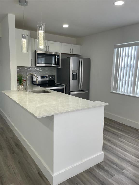 Welcome to your new home in this stunning, guard-gated 55+ community, where luxury meets convenience! This barely lived-in, 2nd-floor corner condo is a true gem, offering a bright, modern space with an open, airy floor plan.Featuring gorgeous white shaker cabinets, sleek quartz countertops, and a neutral backsplash, the kitchen is designed for both style and functionality. Recessed lighting, wood-tone laminate flooring, and ceramic tile in the bathrooms enhance the contemporary feel throughout. The glass shower doors add a touch of elegance, and the screened-in patio provides a serene spot to relax.This unit also includes a full-size washer and dryer in a spacious laundry room with plenty of storage, making everyday living a breeze.