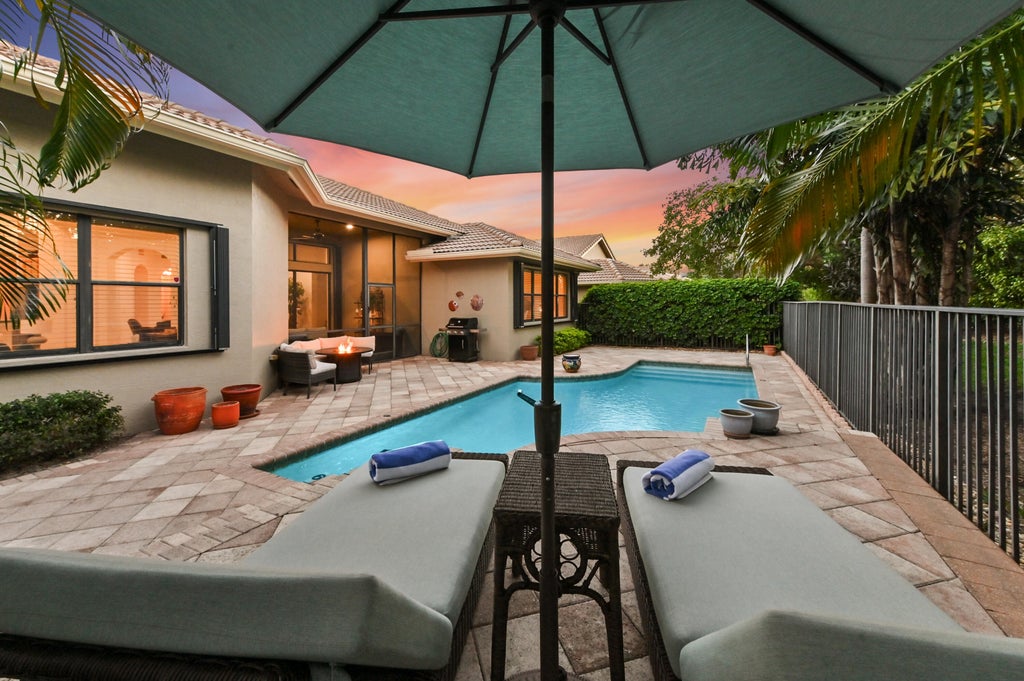 Welcome to this refined Estate home that embodies elegance and comfort. This freshly painted, move-in ready residence features a grand double-door entry leading to a spacious, high-ceilinged foyer. With 2,616 square feet, the home offers three bedrooms, two and a half baths, and a two-car garage with extra storage. The modern gourmet kitchen boasts granite countertops, stainless steel appliances and lots of cabinet space. The professionally landscaped, fully fenced yard includes a heated swimming pool and lounge area, perfect for relaxation or entertaining. Being offered fully furnished.