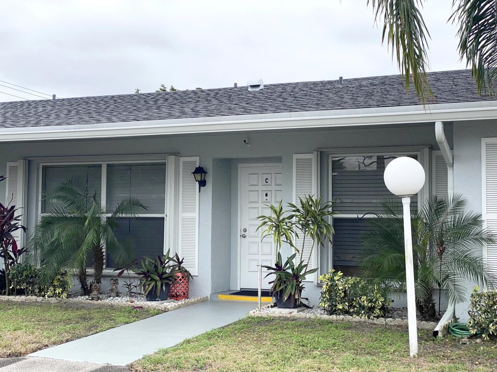 PINES OF DELRAY WEST. Don't miss out on this luxury 2 bedroom villa that blends contemporary style, comfort, and convenience. The living room provides sliding glass door access to your south facing screened patio.- that in turn opens to your private outdoor space where tropical landscaping creates a serene environment for relaxation and gatherings. The over 14 foot long eat-in kitchen-with walk-thru to dining area- features white shaker wood cabinets, LG range with true convection, side by side LG washer & dryer and a 21 cuft side by side refrigerator. There's also 16'' x 16'' tile throughout, except for luxury vinyl plank flooring in both bedrooms. Plus there are textured ceilings (no popcorn) throughout, a 2.5 ton AC system and all PGT windows with accordion shutters.
