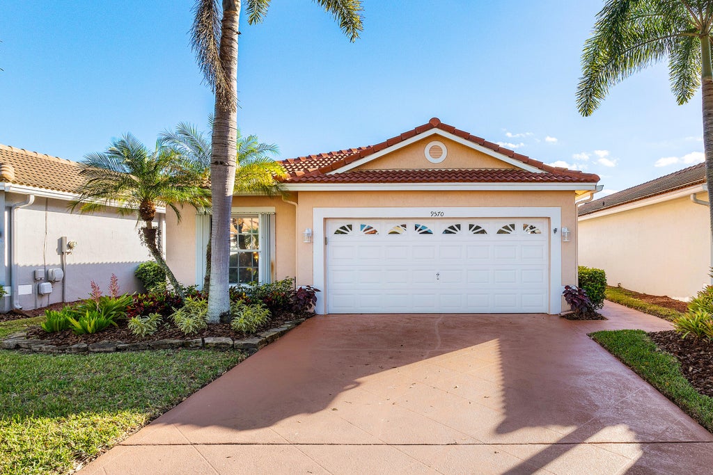 Bright & beautiful Lake View Home! Newer Roof, Updates Galore, Hurricane Accordion Shutters & No Popcorn Ceiling. When entering this home you immediately feel the tranquil presence, neutral paint colors, flooring, & recessed lighting. Recently updated White Kitchen with stainless steel appliances. Enjoy the water view from the large master bedroom with on suite bath, new floors and vanity. 2nd bath also has new vanity, floor, & glass shower door. The large patio has an oversized screen to sit and enjoy the long lake view. The renovated clubhouse is walking distance away, and there is always something to do! Cards rooms, library, arts & crafts, billiards, fitness center, stage w/ dance floor, pickle ball, tennis, shuffleboard, and large heated pool are many of the community's perks.