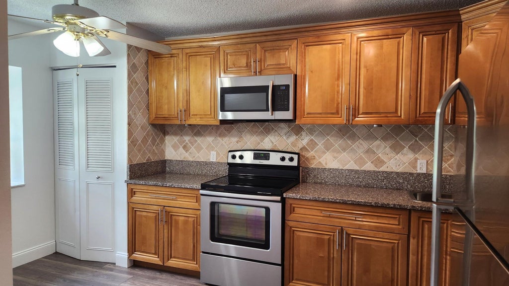 Great RENTAL in this Well Maintained Villa in All-Ages Boynton Beach Community. This VILLA Features 3 bedroom/2 Bath L-Shape Patio, Newly Installed Laminate Flooring throughout and Freshly Painted. Spacious Kitchen with Eat-in kitchen Area, Large Living/Dining Area overlooking the Patio, Separate Large laundry Room with Storage Space. Split Bedroom Plan, Master Suite with Large Walk -in Closet and Master Bathroom with Double Sink New A/C (1yr ) TWO Parking Spots. Centrally Located close to Boynton Beach Mall, many Restaurants and a short 15-minute drive to the beach. Enjoy leisurely matches on the tennis court, relax by the sparkling swimming pool, and host gatherings at the club house and party pavilion.1st month & 1 month security --