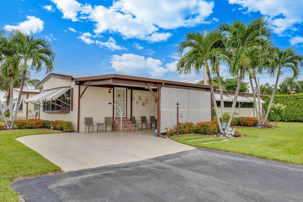 Well Maintained 2 Bedroom 2 Bathroom home in desirable 55+ Manned Gated Community. The home is one of the largest models in the community. It is a 2 bedroom but can easily be converted to a 3 bedroom using the enclosed air conditioned patio area. The exterior of the home has vinyl siding, is meticulously landscaped and has a lifetime warranty for the non slip finish on the driveway and stairs. Home is sold completely furnished which includes newer recliners, couch that converts to bed and a large dining room table for family gatherings. The spacious home has a living room with plenty of windows for natural lighting, wall to wall built in cabinets, separate dining area, washing and dryer inside. Kitchen has a newer refrigerator, large island, pantry and tile floor.