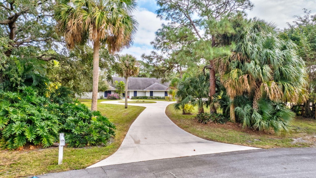 Privacy awaits on nearly 1.5 acres bordered by canal and tucked away towards a quiet end of the community, offering in-town, ranch living in gated Horseshoe Acres! Architecturally unique to bring your finishing touches and thoughtfully laid out over approximately 2,965 square feet of one-level living space. Beyond the entry, voluminous ceilings await, as you entertain in the formal living room with custom built-ins and coral fireplace, and elevated dining room area, overlooking the lushly landscaped backyard beyond. The updated kitchen features white shaker cabinetry, Corian counters, stainless-steel appliances, walk-in pantry, eat-in area, and opens to the adjacent den with custom built-in cabinetry. Retreat to the Primary suite with custom built-ins and Primary bath with privacy garden