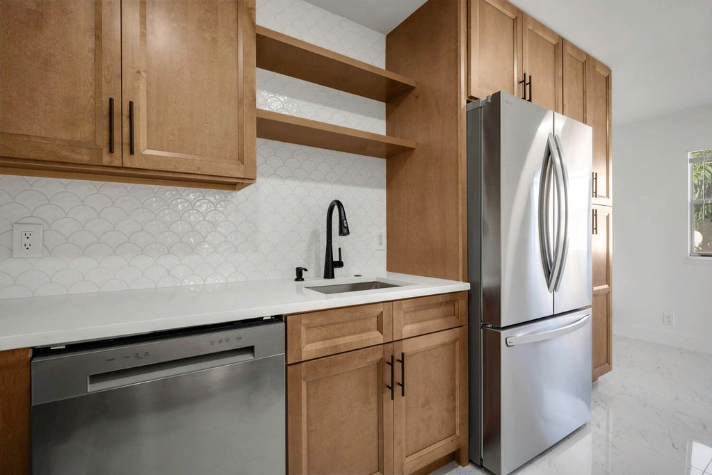 Don't miss out, this completely renovated corner unit is a must see! With its sleek finishes and attention to detail, this property offers an exceptional living experience in Kings Point! Inside is a great floor plan seamlessly combining living, dining, and kitchen areas. This recently updated kitchen includes stainless steel appliances, cabinets, quartz countertops, and lighting. This open kitchen provides ample workspace for cooking. This unit also offers a generously sized bedroom. The bedroom features an oversized closet. The updated bathrooms have contemporary finishes throughout and only a 15 minute drive to the beach!