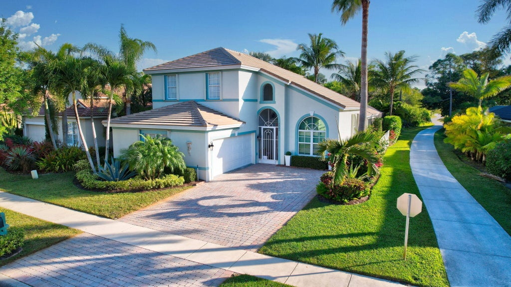 This home has just gained 35 years of life with a New Roof (completed March 2025) yielding a very low Homeowner's insurance premium! This 4 bedroom, 3 bath home is an ideal floor plan with spacious bedrooms and the master retreat on the first floor. Large sliding glass doors lead to a lanai and a fully screened enclosure covering the heated in-ground saltwater pool with fountains and a waterfall. This outdoor oasis is complemented by a fully equipped kitchen. Lush tropical landscaping affords total privacy to maximize outdoor living. The living room and dining room have a vaulted ceiling customized with shiplap and wooden beams. The over-sized two car side entry garage with fully tiled floor and abundant storage is accessed from an extra wide paver driveway.