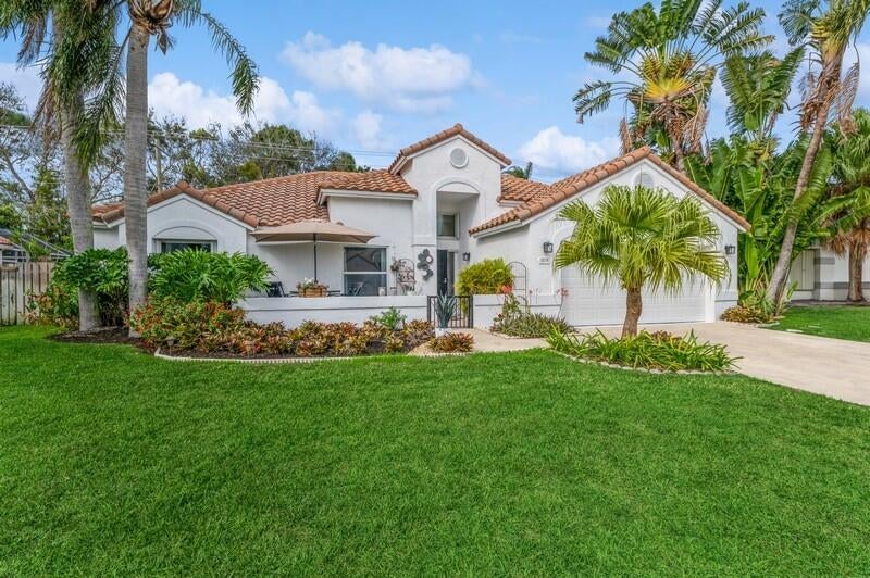 Move right into this beautifully updated single-family home nestled in the peaceful and picturesque Meadows neighborhood. Boasting a spacious, open floor plan, this home is bathed in natural light and features elegant 24x24 white ceramic tile flooring throughout. The stylish kitchen has sleek quartz countertops, modern white-and-gray cabinetry with pull-out drawers, and plenty of prep and storage space. The generously sized main ensuite offers a tranquil retreat, complete with a walk-in closet and a luxurious updated bathroom featuring a quartz-topped vanity, a soaking tub, and a large walk-in shower. The split floor plan ensures privacy for all, with two guest bedrooms located in their own wing and sharing a beautifully updated bathroom. Impact windows and doors provide security