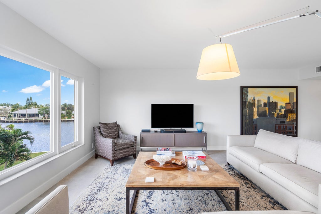 Stunning, 2/2 with a waterfront view of the Intracoastal Waterway. This fully renovated, 3rd floor unit comes furnished (with the exception of the card table and chairs, rug in bedroom, artwork, and personal items). The unit includes a carport space. Short distance (.64 miles) to Atlantic Ave. Short distance (1.2 miles) to the beach. 24/7 security. Impact windows. Association application fee is $150 and deposit is a $500 refundable move-in deposit. Financing requires 20% down. No rentals allowed. No Pets. Additional 72 sq. ft. of the enclosed porch area is included in the living sq. ft. All measurements are approximate and subject to error, omission, and changes without notice.