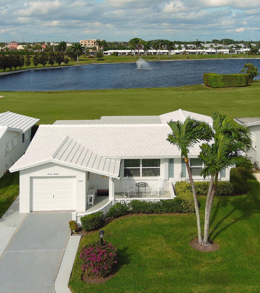 Million dollar golf and lake views from this expanded Edgewood Model. Thousands in upgrades including brand new roof 2023. A/C 2022. Neutral tile throughout on the diagonal. Open Kitchen floor plan with Florida room and sliding glass doors. Recessed lighting. Small office area with two murphy beds. Perfect back patio private location for watching the golfers and entertaining. Front porch and double drive. Homes on the golf course rarely come available, so come and see. Paid up recreation lease in full. FREE PAR 3 Golf, 3 Active clubhouses with 3 heated pools. Fitness center. Minutes to Ocean Beaches, shopping, restaurants and I 95. Owner will consider selling furnished. Vacant for quick close.