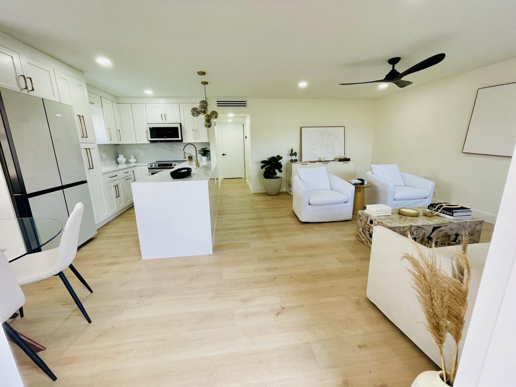 This is a new and custom designed Villa that you must see! Be the first to enjoy this brand new villa on the water, it has never been lived in post updating.Stunning quartz countertops w waterfall, designer backsplash w matching under counter design. Real wood soft close cabinets, garbage pull out, double pantry with extra storage.Large fireclay apron sink w/ Kraus faucet air built in air switch and soap dispenser.30 bottle built in wine fridge.High end Bespoke Samsung appliances are all brand new. Engineered hardwood flooring throughout.Spa like frameless shower bathrooms.Frosted glass pocket door separating bedrooms for an ensuite feel. Recessed lighting throughout, ceiling fans and designer chandelier.AC,Water heater,Nest A/C brand new.HVHZ rated sliders with built in blinds.