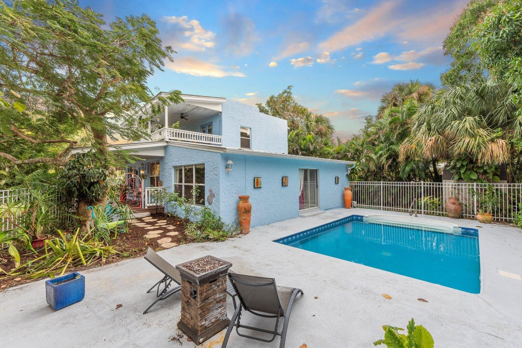 Charming Old Florida Gem in Downtown Stuart! Step into the charm of 1930s Florida with this beautifully renovated Hemingway-style pool home in the heart of Downtown Stuart. From the inviting wrap-around porch with swing, to the warm wood floors, every detail exudes timeless appeal. The updated kitchen is perfect for modern living, while the expansive pool deck & lushly landscaped lot offer a private oasis with mature trees, butterfly garden & complete privacy. The 1st floor master suite features a spa-like bath with a double vanity, separate shower & soaking tub. Upstairs, two spacious guest rooms open to a covered patio where you can enjoy river breezes & relax in comfort. Recent updates include a 2019 roof, new appliances, new hot water heater, fenced yard and pool pump.