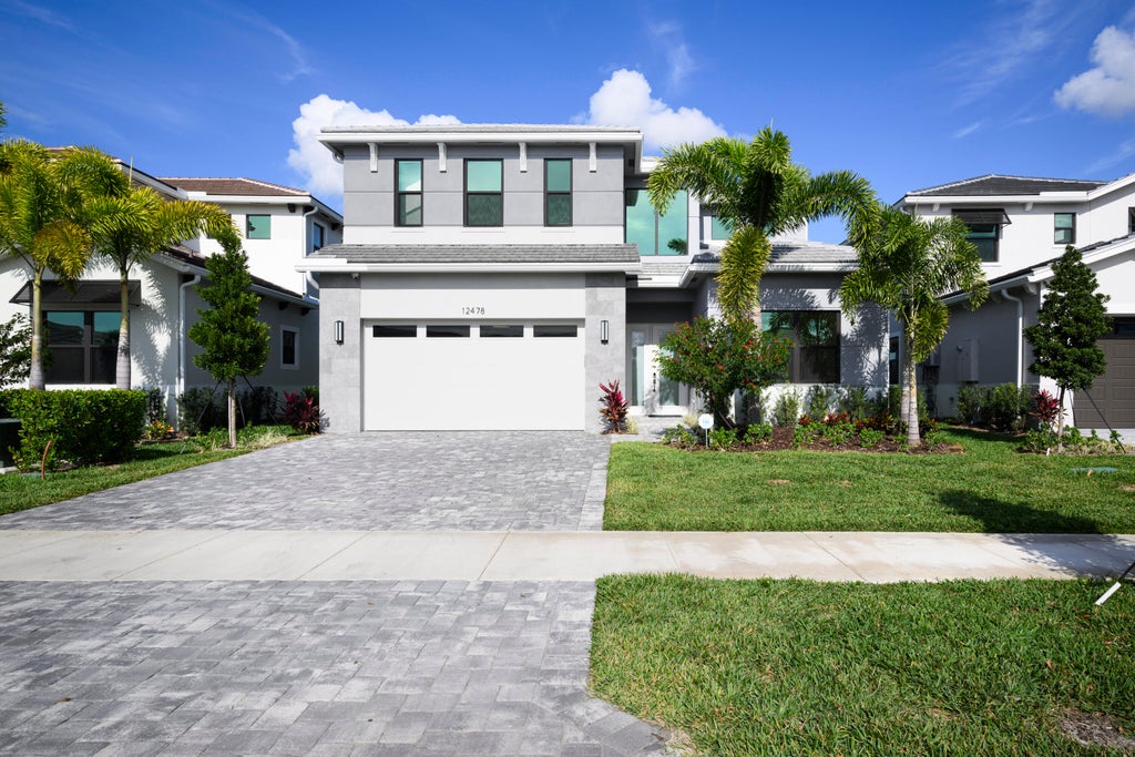 This Brand-New Modern Luxury Two Storied Construction located in Solana Bay in the Avenir Community in Palm Beach Gardens, Florida. , Huge Gourmet kitchen with upgraded cabinets and sleek Quartz countertops on the center island, large counter to seats 4 easily, living area with separate dining area, upgraded floors throughout with no carpets, modern lighting, chandeliers, fan fixtures, modern decor upgraded blinds. This property has 3 bedrooms plus an office space/Bedroom with an attached bath, master bedroom and an office/bedroom in the first floor, total 4 full baths, 2 bedrooms with attached bath upstairs, large loft upstairs for play/media, large lanai with a Summer kitchen, large heated pool facing a lake with a fountain, upgraded landscape with lighting, resort type living with all