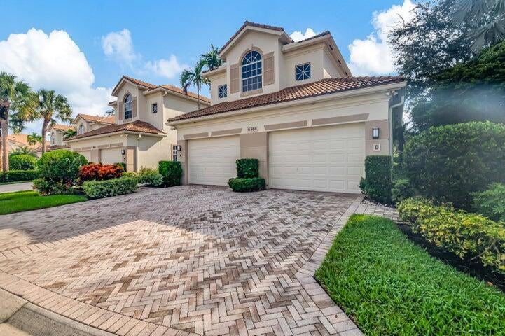 Most square footage for the money in Polo! With over 2700 ft. and a private elevator this spacious 3 bedroom 3 bath upstairs condo is freshly painted with new carpet. Light and bright south facing corner unit with total privacy and lush garden view. Additional guest parking adjacent. Complete impact glass and 1.5 car garage with air conditioned storage.