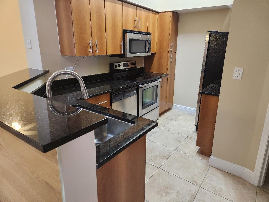real nice unit with granite kitchen and stainless steel appliances 2nd floor with vaulted ceilings and skylight, water inc , all tiled with , with wood in bedroom, 2 accent wood walls vacant, sceduale online Shows extrememely well!!