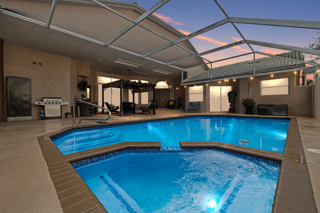 CLEAN INSPECTION REPORT BUYERS COULDN'T PERFORM! BEST DEAL IN THE NEIGHBORHOOD! This stunning courtyard estate offers the largest interior square footage currently on the market and is priced as the second-lowest per square foot, making it an unbeatable opportunity in the neighborhood.Step into luxury with this exceptional 4-bedroom, 4-bathroom home, designed to seamlessly blend elegance and functionality. Nestled within the highly sought-after Boca Winds community, the residence welcomes you with a serene courtyard featuring a heated pool and spa, ensuring resort-style relaxation year-round.Inside, you'll find over 3,000 square feet of sunlit living space, enhanced by hurricane-proof windows that provide both peace of mind and natural tranquility.