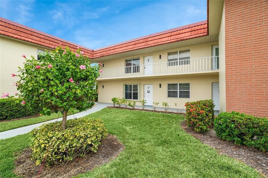 This charming partially furnished 2BR/2BA condo in Vista Royale is move-in ready, w-LVP flooring, a soothing neutral color palette & ceiling fans throughout. Features include upgraded kitchen w/granite countertops & deep sink, pristine white cabinets & newer stainless steel appliances; 2019 water heater; updated bathrooms w/comfort-height toilets, granite countertops & new faucets; carpeted bedrooms. Private lanai, framed by double-hung windows overlooking lush greenery. Residents enjoy exclusive access to a golf course, 4 clubhouses w/heated pools, tennis & pickleball courts, plus weekly entertainment and events. Just minutes away from shopping, dining, beaches.