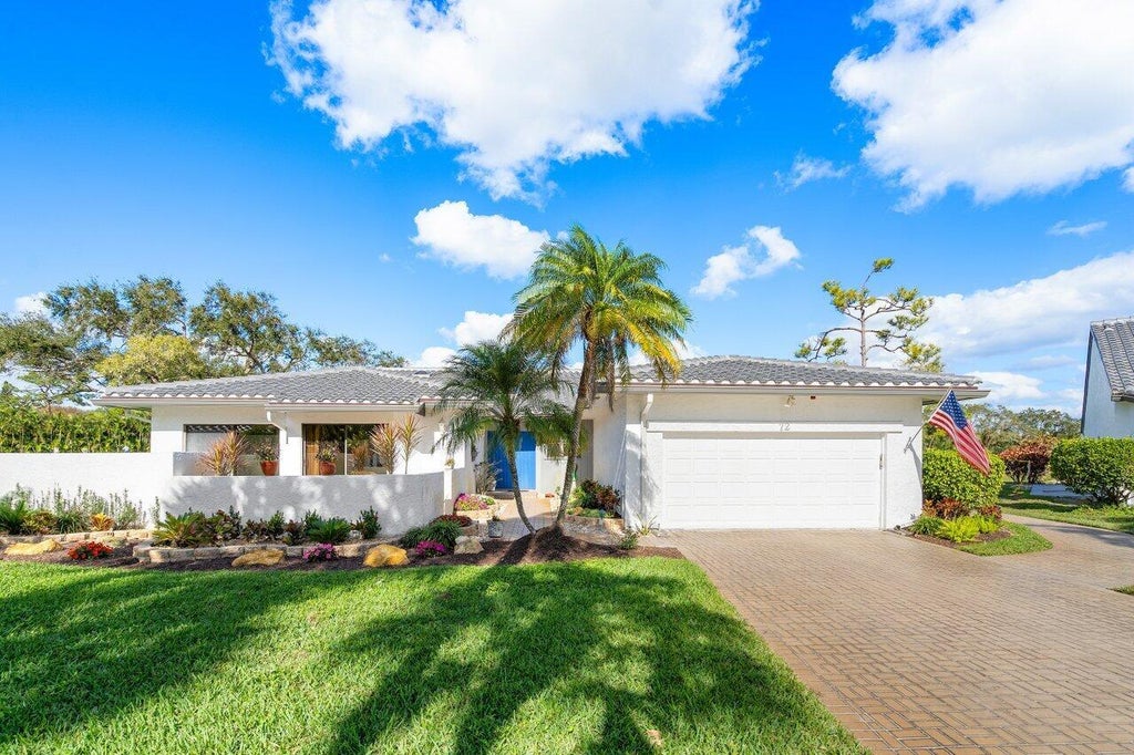 Welcome to 72 Northwoods Circle, a sought-after ''Model-10'' home on a tranquil cul-de-sac with stunning golf and water views. This 3-bedroom, 3-bathroom single-family residence offers 3,372 sq ft of living space, ideal for those looking for a larger home. The property features a brand-new roof covered by the Seller and is a short walk from the Northwoods community pool. Inside, a bright gallery foyer opens to a large living room with a wood-clad vaulted ceiling, a formal dining area, and an eat-in kitchen. The primary suite boasts his and hers walk-in closets and an en-suite bath. Additional highlights include a secondary en-suite bedroom, a den/third bedroom with an adjacent full bath, a glass-enclosed Florida Room, a screened porch, and a two-car plus golf cart garage.