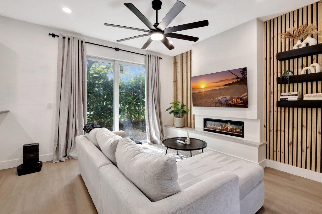 Nestled in an exclusive 20-home gated community, this 3-bed, 2.5-bath corner townhome offers modern updates and coastal charm. Enjoy brand-new seamless luxury vinyl flooring, fresh paint, and updated lighting throughout. The open floor plan features a custom-built entertainment center and a new impact slider leading to a spacious yard. The kitchen boasts new stainless steel appliances, and the 1-car garage adds convenience. HOA includes internet, and you're just a 5-minute drive to the beach along the Intracoastal. A rare gem in a prime location!