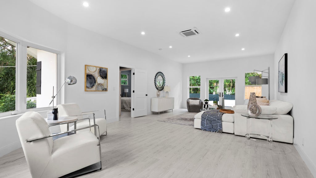 Incredible Investment / No Rental restrictions.. Modern & spacious villa by the beach w/ brand new interior, high ceilings, full of light and fully renovated from foundation to the ceilings, plumbing, hurricane high impact windows, zoned A/C and heating in every room. Steps to the beach or the pool (private beach access), fenced back yard, tropical foliage and landscaping, with huge wrap around patio for entertainment, grilling, tanning and even an outdoor rain shower. Chefs kitchen with all new high end appliances, beautiful custom cabinetry, granite countertops, spacious dining area, island seating to entertain friends and family. 3 Large bedrooms with custom walk in closets, washer/dryer, reset lighting, spectacular living area with bay windows, double doors to the back yard patio