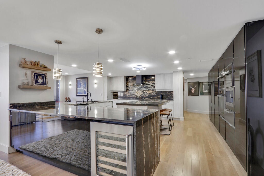 Experience waterfront luxury in this beautifully updated 2-bedroom, 2.5-bathroom condo. With stunning water views from every major living space, this condo offers an exceptional combination of style and comfort. The chef-inspired kitchen is highlighted by a striking granite waterfall countertop, a spacious kitchen island, and premium Miele stainless steel appliances, making it ideal for both cooking and entertaining. The formal dining area adds an elegant touch, while the expansive living room is the perfect place to relax and enjoy the breathtaking water views. Step outside to the covered balcony, where you can take in the serene ocean and Intracoastal views. The master suite features dual vanities, a large walk-in shower, a soaking tub