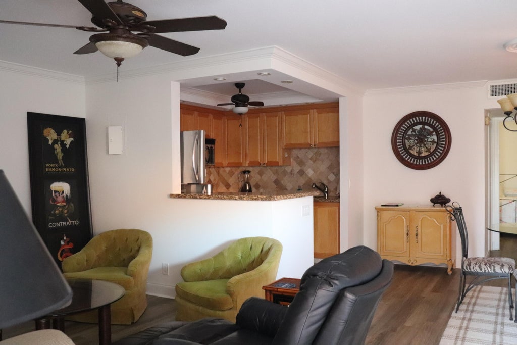 Elegant 55+ Rental in Delray Beach! 🌴✨Discover modern comfort and stylish living in this beautifully upgraded 55+ condo, perfectly situated in vibrant Delray Beach! This elegantly designed home features crown molding throughout, an open-concept kitchen with granite countertops, stainless steel appliances, and sleek fixtures. Enjoy brand-new Luxury Vinyl Plank flooring in the living, dining, and bedroom areas for a fresh, contemporary feel. The upgraded bathroom offers a spa-like retreat with high-end finishes. Fully furnished with tasteful decor and elegant accessories, this move-in-ready condo is the perfect place to relax and embrace an active lifestyle.Don't miss this incredible rental opportunity--schedule your showing today! 🏡☀️