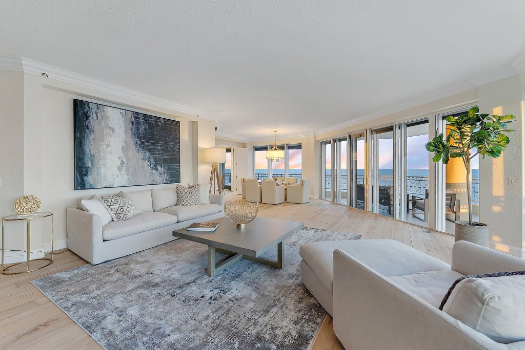 Perched atop the pristine shores of Jupiter Island, The Claridge is an ultra-exclusive boutique residence offering just 16 private estates, redefining the pinnacle of coastal living. This full-service, white glove concierge building delivers 24-hour security and a resort-like ambiance, ensuring the ultimate in privacy, sophistication, and effortless luxury.Elevated on the 6th floor, this south-facing sanctuary unveils unrivaled, panoramic views of the Atlantic Ocean, the Intracoastal Waterway, and the iconic Jupiter Lighthouse. Floor-to-ceiling glass walls frame a daily masterpiece--golden sunrises over the ocean and fiery sunsets over the Intracoastal--filling every space with natural light and breathtaking beauty. Spanning 3,500 square feet, this 3-bedroom, 4.5-bathroom estate in the
