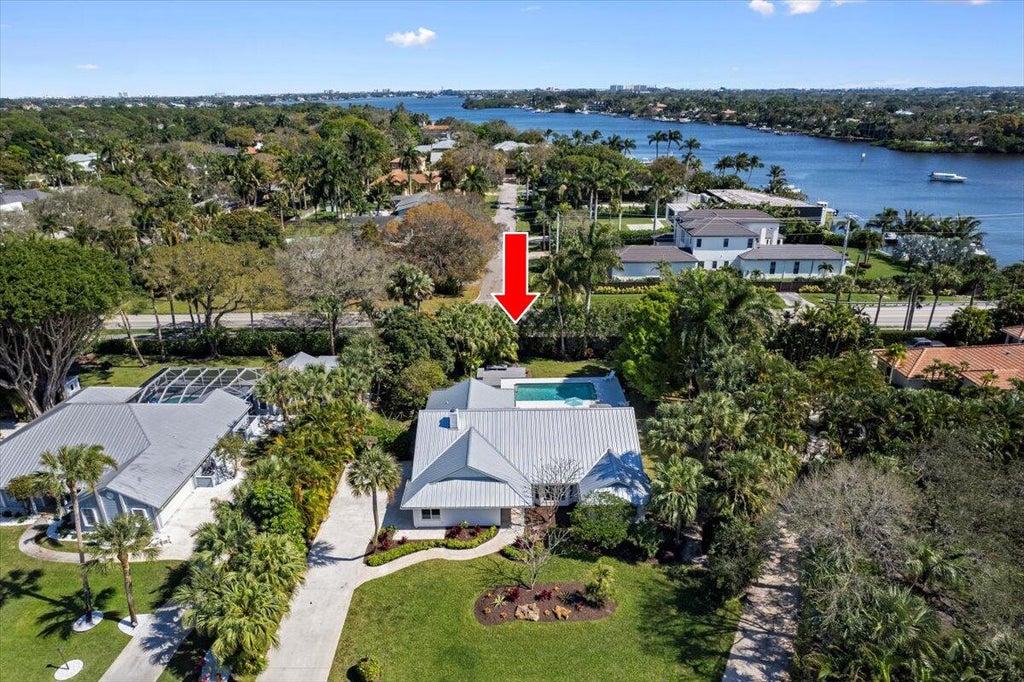 Location, location, location. This meticulously renovated pool home is strategically situated in the heart of Jupiter & sits on over a half acre. This residence boasts a brand-new metal roof, hurricane impact doors & windows, hardie plank siding, & a kitchen transformed with modern cabinets, quartz countertops, LG appliances, a convenient pass-through window, dual pantries, & a breakfast bar that overlooks the inviting family room adorned with a wood-burning fireplace & vaulted ceilings in the living areas. Elegance extends throughout with wood-look tile floors, complementing the well-thought-out split-bedroom floor plan. The private primary suite bathroom is a sanctuary of luxury, featuring new vanities, a separate shower with a built-in bench, a freestanding tub & makeup vanity.