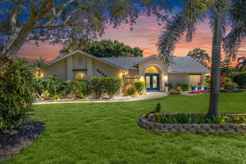 Discover your dream home! This stunning CBS (Concrete Block Stucco) residence boasts a modern metal roof that's just 12 years old and is equipped with IMPACT WINDOWS for enhanced safety and energy efficiency. Dive into relaxation with a solar-heated swimming pool and enjoy the expansive 2000 sq. ft. screened patio sundeck--perfect for entertaining or soaking up the sun. The spacious, fenced backyard is a private oasis, and the side-entry 2 1/2 to 3-car garage offers ample space for all your vehicles and storage needs.Step inside to find a blend of elegance and comfort, featuring tile,real wood flooring and laminate wood throughout, soaring vaulted ceilings, and a beautifully updated kitchen with superb stainless steel appliances, solid surface quartz countertops, (SEE MORE)