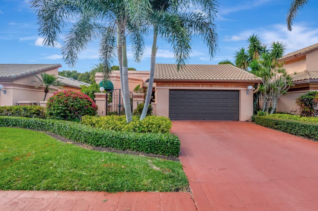 Charming 2 bedroom one story home with 2 car garage in Villa Flora. Master bedroom has new floors and master bedroom, and living room, dining room and foyer were recently painted! Beautiful backyard with covered patio. Step down great room with doors to back patio. Large kitchen and eat in area with 1 year old appliances. Nice size master bedroom with queen size bed and master bath with large shower, jacuzzi tub and sky light. 2nd bathroom with walk in shower. Separate laundry room. Built in desk and cabinet in 2nd bedroom. Villa Flora is located in popular non-mandatory Boca Pointe Country Club. The club offers yearly memberships for both sports and social, and golf. Amenities at the club for members include tennis, pickleball, golf, fitness center, pool and dining!