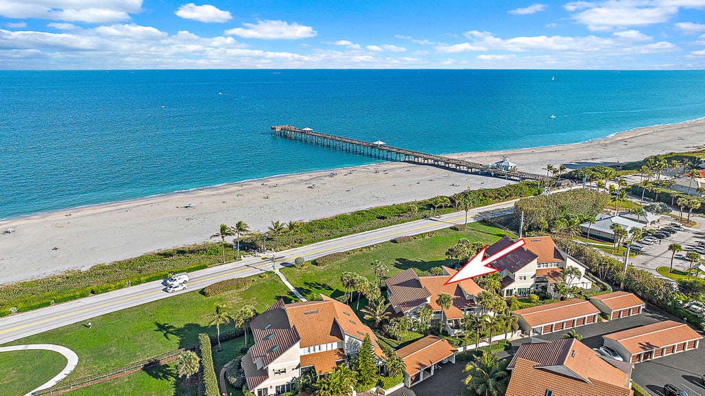 Direct ocean views from this 2 bedroom plus den 1st floor ground residence! Kitchen and living open floor plan with plenty of light being offered fully furnished; den has a pull-out sofa with desk area full of windows with ocean water views, renovated bathrooms, newer air condoning unit, private covered carport parking right outside the residence. Walk right out your screened patio to the beautiful beach just across from Juno Pier dog friendly beach. Beachcomber is nestled between two parks and the ocean with no concern for additional development. Beachcomber HOA replaced the roofs last year and is a pristine beach community located walking distance to some of the best restaurants in town, parks, boutique shopping, Publix grocery, with a short drive to nearby Harborside. Welcome to