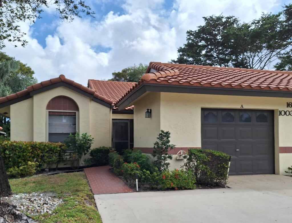 Reduced to sell - bring all offers for this well maintained 2 bed + den villa! Spacious open living room/dining room/den with fabulous vaulted ceilings and skylights. Kitchen boasts an eat-in area, an open wall to the great room & a door opening directly to the garage. Giant floor tiles througout the house, fans in every room, surround windows on three sides with storm shutters on each one. Relax on the lanai and enjoy the private back yard facing a tranquil garden. The huge lanai has sliding glass doors opening to both the primary bedroom & the great room. This 55+ community has a clubhouse with fitness rooms, sauna, steam room, billiards, ping pong, library, card rooms, ballroom & clubs for everyone. Walking distance to houses of worship. Only 3 yr old AC!