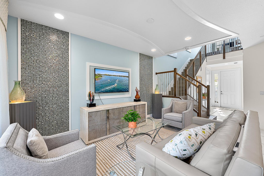 Stunning furnished townhome! Former model home, spacious 3br, 2 1/2 bath + loft fitted for home office. Generous main suite with walk-in closet, luxurious main bath with frameless shower, double sinks and separate tub. convenient upstairs laundry, great room design with accented TV wall. Spacious kitchen with ,quartz counters and waterfall island, covered patio with gorgeous lake views. Gated community minutes from pristine beaches, gardens mall,Alton Town Center, Abacoa, Roger Dean Stadium public golf courses and tennis courts, top rated schools Located steps from community pool and fitness center.