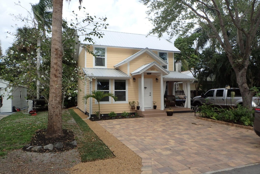 Cozy Historic Charmer on cottage lot within walking distance to downtown Stuart shopping district & waterfront. This home has been extensively remodeled/rebuilt with a new FR/Kitchen addition in 2022 including all electrical, plumbing, mechanical, roof, insulated impact windows and interior finishes. (Everything New). New detached Workshop/Garage (ie; Mancave/Sheshed) with kitchenette/full bath and 2nd level flex area. Exterior wired/plumbed for RV parking, generator and hot tub. Ample parking via gravel drive on side over 100' and 2+ paver parking pad. Full attic w/walk up stairs. Master Bedroom Suite on Main level. 2BR''s, 1 Bath & office area-2nd floor. Custom Kitchen w high top bar area and breakfast nook (ample solid wood cabinets/marble (dolomite) countertops. Tropical Paradise!!