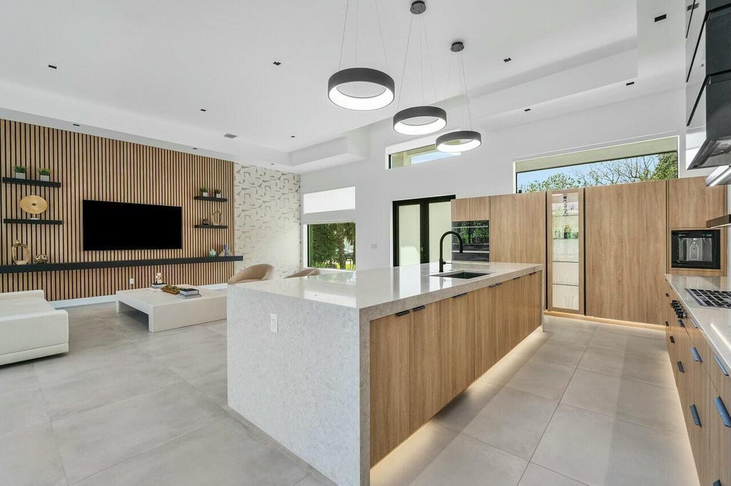 Move In Ready New Construction Custom Pool Home minutes from the waterways of North Palm Beach. Do not miss this opportunity to own this gorgeous high end home with standing seam metal roof, impact windows & doors, heated saltwater pool. The large open floor plan with 12' ceilings, 10' doors and large 36''x36'' porcelain tile throughout creates a light, bright, and natural atmosphere to enjoy. Beautiful and tasteful finishes and a useful and practical floor plan will satisfy the most particular individuals.
