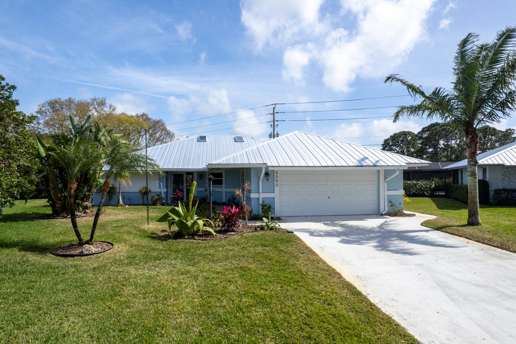 Bathed in natural light this completely remodeled home with volume ceilings has a new metal roof (2023/24), A/C (2019), PRIVATE pool with sunning shelf (2018), large format porcelain tiles (2018), full impact windows and doors (2018). Spacious split bedroom floor plan, huge primary suite with connecting sitting room perfect for home office or nursery, open concept kitchen with white shaker cabinets and drawer pull-outs, stainless steel appliances and granite countertops. Freshly painted and ready to be moved into. Optional Miles Grant Country Club membership (under $2k/year) offers an 18 hole 64 par Charles M. Mahannah designed golf course, 5 Har-tru/2 hard tennis courts, 4 pickleball courts, pool, clubhouse with social events and activities.
