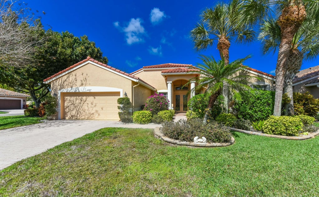 NEW ROOF (2025) corner lot, 3 bedrooms 2 bath home with built-in hot tub (3 year old heat pump) even an outdoor Kitchen. Imagine the fun times to be had. This home has a 2 year old Trane AC system for year-round comfort. Stunning granite countertop and backsplash and the primary bath has been updated. Wonderful home, fantastic floorplan, private lot, great choice for anyone seeking a well-maintained, move-in-ready home with all the essential upgrades. Ponte Vecchio has so much to offer, from pickleball, tennis, bocce, fabulous fitness center, pool, and exquisite newly remodeled clubhouse where clubs and activities are plentiful from current events, investment clubs to wonderful entertainment .Come and make Ponte Vecchio your home!