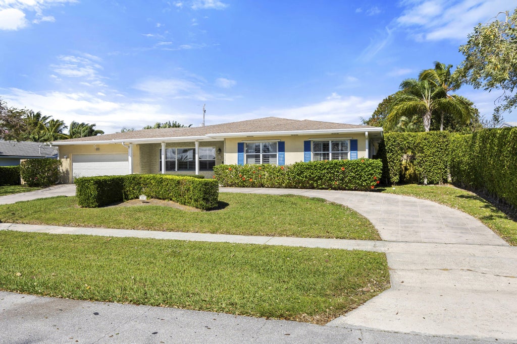 Rare, oversized ranch home in the charming village of North Palm Beach. This 4-bedroom, 3-bathroom home offers over a designated den/office and over 2,800 square feet of living space. This efficient floorplan features one wing of the home with three guest suites (one en-suite) and a separate wing with a large owner's bedroom and bath and an attached office/den. The open kitchen includes a Viking fridge and tons of counter space and storage. Plantation shutters, wood floors, and crown molding add character and warmth. Generous covered area and a large pool create an inviting environment in the private backyard. North Beach is one Florida's most desirable locations. An incredible place to call home. Just minutes from world-class marinas, beaches, golf, shopping and dining.